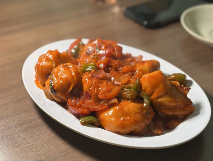 She wasn’t exaggerating. The chilli momos, cloaked in a lastingly spicy, vivid red sauce, were exemplary – their skins thin and delicate, their vegetable filling juicy and full of flavour. “These were not made from frozen,” Vasunthara said, clearly impressed.