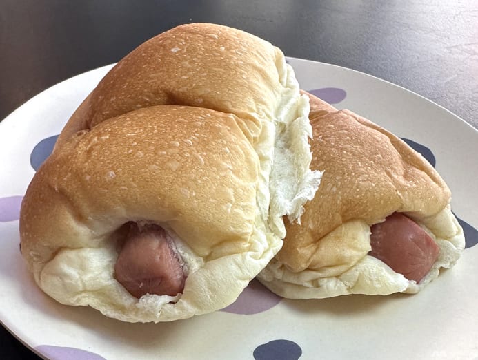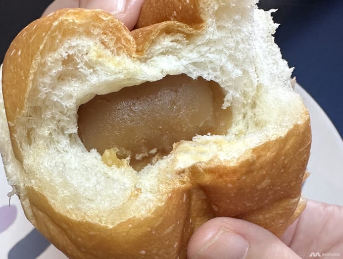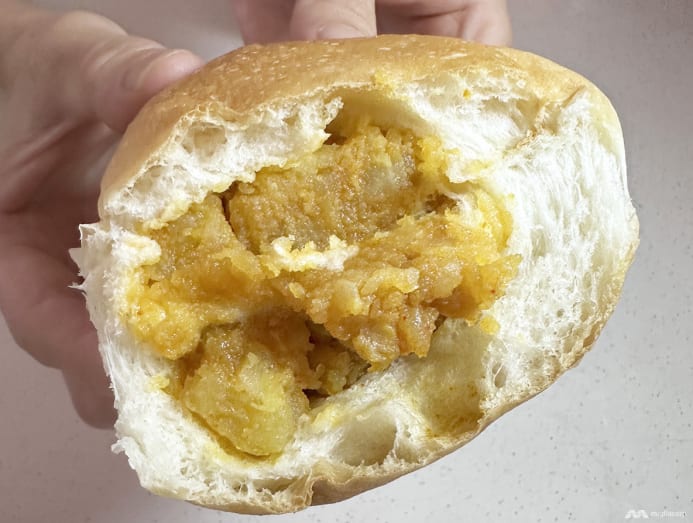 Of all the buns we tried, we liked this curry one best. The hand-sized bun is stuffed with tender diced potato, coated with flavourful and slightly sweet curry.