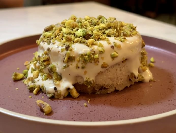Over at Tigerlily Patisserie, the Pistachio Marimo has ranked strongly as one of the most popular items on the menu since it was launched two years ago. Every element in the moss ball-shaped confection is made with pistachio, from a base of crunchy pistachio feuilletine to pistachio sponge and pistachio praline blitzed from caramelised nuts, all circled up in a pistachio mousse.