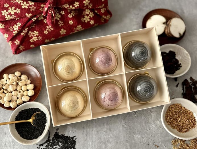 Each box comes with six petite mooncakes, and preorders will open in early August at an early bird price of S$60 a set (delivery fee not included). It costs S$79 after the promotion ends. The six individually packed mooncakes come in three flavours: Charcoal Black Sesame Lotus, Osmanthus Oolong and Taiwanese Taro. The gift-ready box is wrapped in a decorative cloth “reminiscent of the elegant Korean bojagi”.