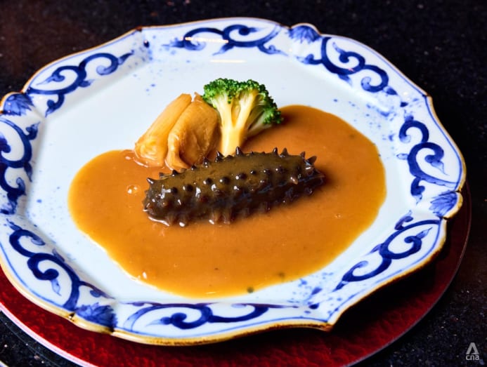 Another new, seasonal dish features extremely rare, prized Hokkaido Hiyama sea cucumber that is packaged and exported dried; here, Kentaro taps on Chinese cuisine’s unique expertise in using super-premium dried seafood to the best advantage with a top-secret, three-day-long rehydration method, for a superior texture you won’t find in regular, fresh sea cucumber.