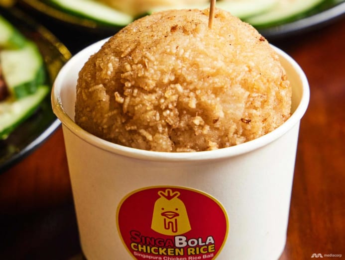 Melaka’s Jonker Street-style chicken rice balls can also be found in Singapore – basically rice packed tightly and shaped into orbs. Singabola’s chicken rice ball is a whole 'nother thing. A portion of steamed chicken meat is added to rice, along with braised egg and (optional) coriander, then pressed into a sphere. The almost ostrich egg-sized ball is then deep-fried till crispy and served in a paper bowl.
