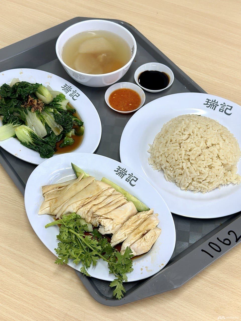 Moh Swee Kee serves only steamed chicken rice, with straightforward items like set meals priced according to various cuts of chicken (from S$5 for a one-person set with breast meat to S$7 for drumstick). Each set comes with steamed chicken, rice, a veggie side and soup.