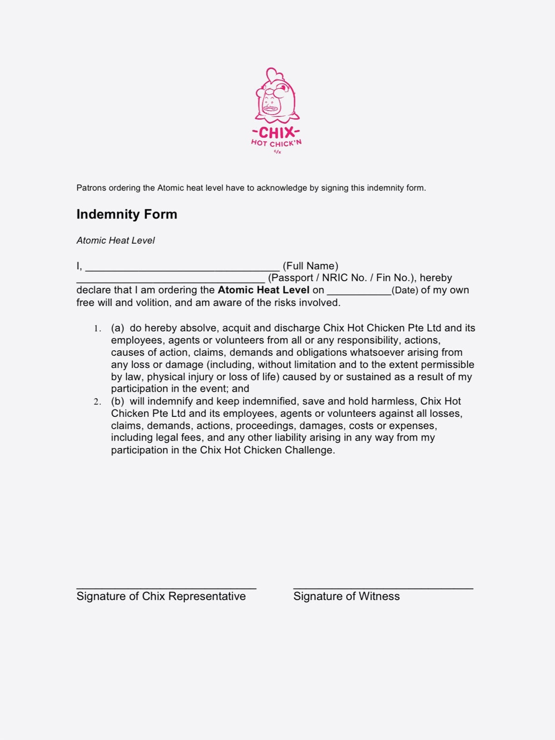 Customers who want to eat the spiciest fried chicken at Taufik Batisah's restaurant must sign an indemnity form