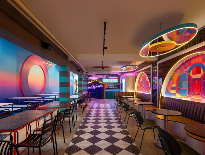 “We were going for a futuristic Americana diner type of vibe, hence the loud colours and pop art. The disco ball was the icing on the cake – we just wanted it to be funky and fun,” chirped Taufik.