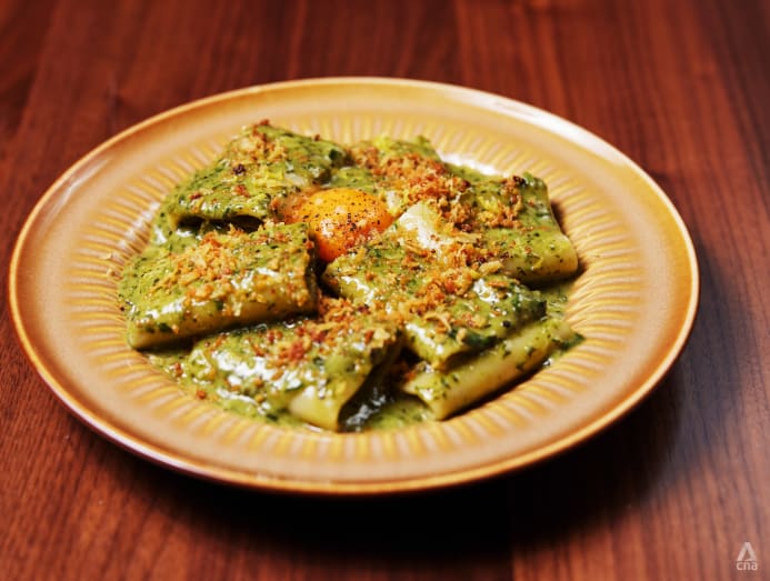 The humble dessert, he said, embodies “the style I'm trying to achieve – things that have been forgotten about or are seen as outdated. I try to bring them back, put them on the menu in a slightly more current way. I'm currently working on a new dish with caponata, which is a super traditional Italian sauce. I'm just trying to bring back all these old things, old flavours, because nobody else is doing it. Everybody thinks, ‘Oh, that's lame’. Nobody wants to eat it. But I'm trying to bring it back and show that old school stuff is still tasty, lah. Like, those people knew what they were doing when they made it.”