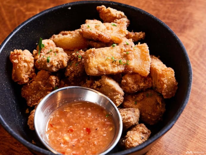 The succinct menu also includes a tight list of sides, some elevated versions of well-loved local food that you would recognise: Har Jeong Fritter (S$14) with pork belly chunks instead of chicken, Calamari Friti (S$15) with calamansi mayo, and a Japanese-style Charred Napa Cabbage (S$14) drizzled with miso butter, nori and bonito flakes.