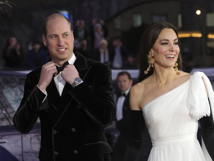 Heir to the throne Prince William, who is president of Britain's film and television academy, was in the audience alongside his wife, Kate. William wore a tuxedo with black velvet jacket, while Kate dressed in a floor-length Alexander McQueen dress that she also wore to the 2019 BAFTAs.