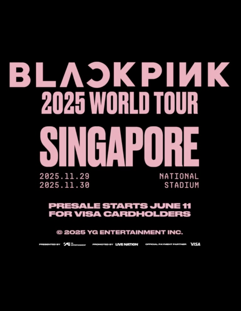 According to the graphic, Blackpink will be performing at Singapore's National Stadium on Nov 29 and 30 with Visa cardholders apparently entitled to a presale session for tickets on Jun 11.