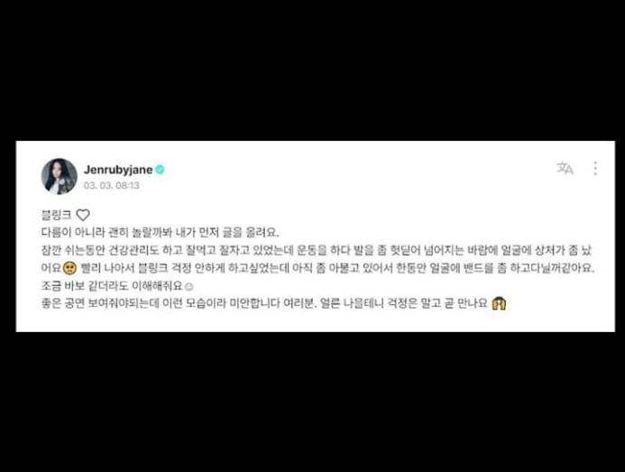 The rapper of the girl group added in the comments of her post: “You really, really don’t have to worry. That’s why I don’t have time to take photos these days and have been receiving treatment each and every day. I’m sorry Blink. Now that it’s come to this, I’ll try to diligently take photos even with my bandaged face”.