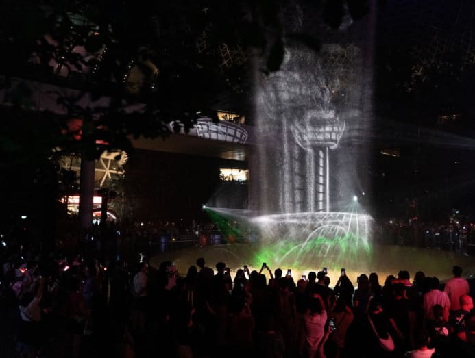Following the concert, fans were in for another treat as Jewel’s Rain Vortex began its National Day show, which saw projections of Singaporean symbols in hand-drawn watercolour illustrations.