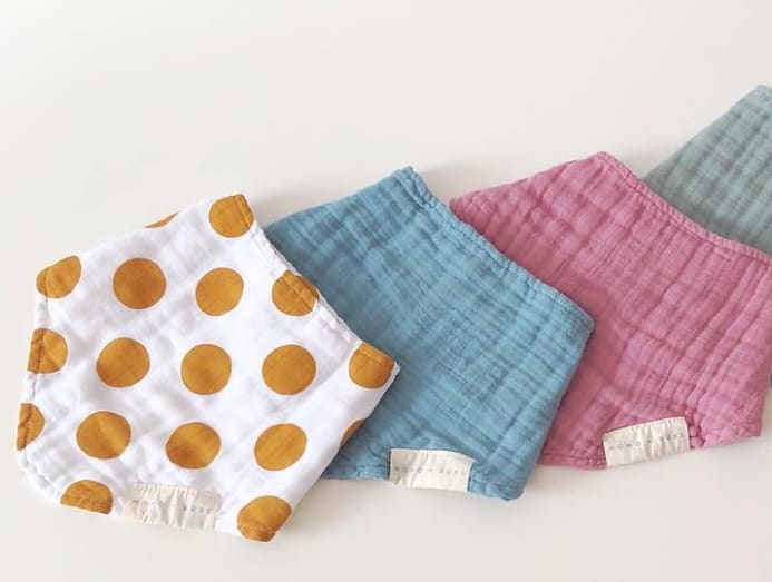 I don’t know if we have a hero product, but our bibs are definitely our best-selling item! Made with 6-ply muslin, they’re soft and thick enough to mop up drool, food and dribbly noses. They also wash well – my customers have told me they can get all sorts of food on them from pumpkin to pasta sauce, and they don’t stain. I spent a lot of time on the size, shape and curvature of the bib so it sits just right, and bunches just the right amount when you put it on.
