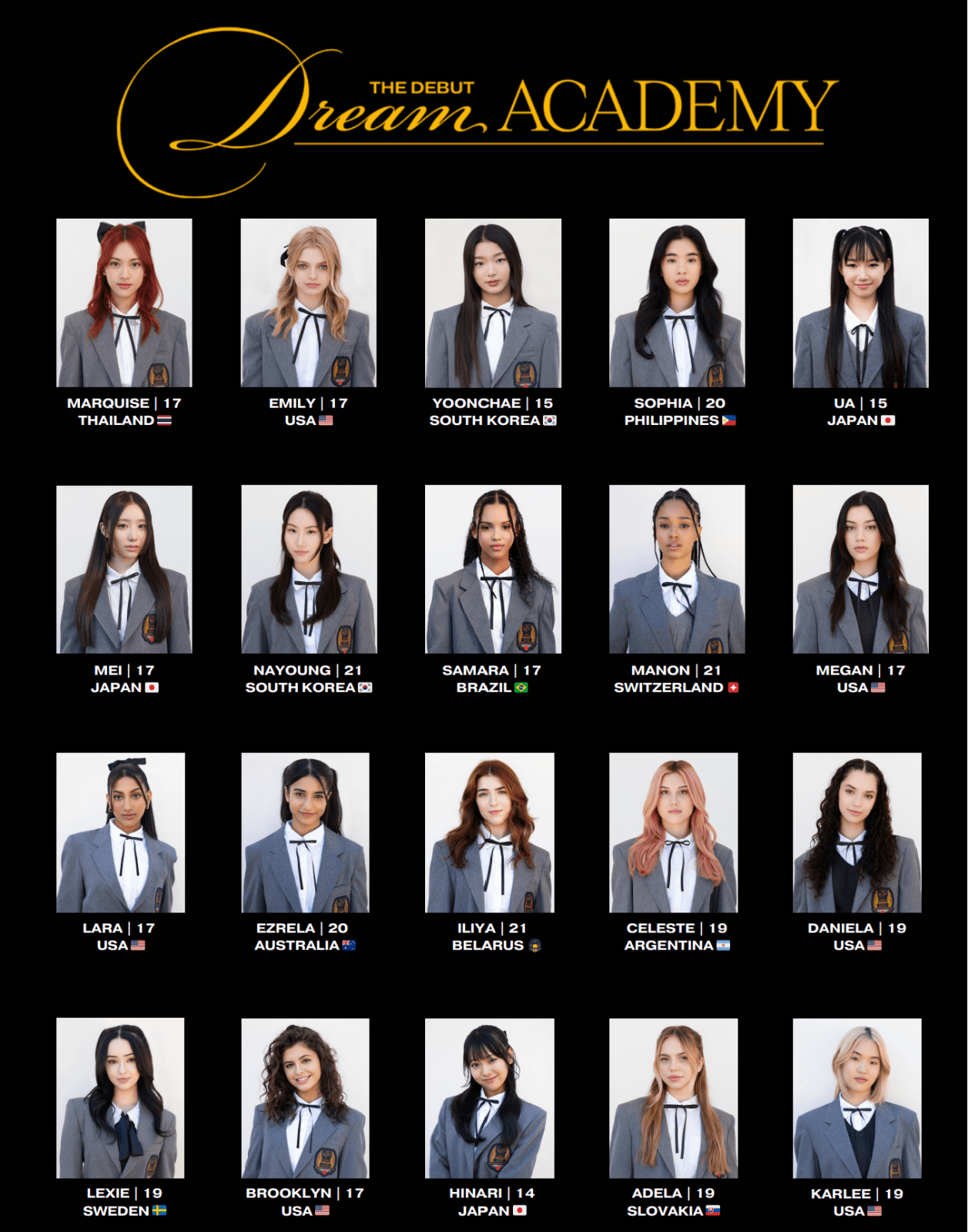 The 20 contestants who are participating in The Debut: Dream Academy hail from various countries including Thailand, Japan and Slovakia. (Photo: Hybe x Geffen Records)