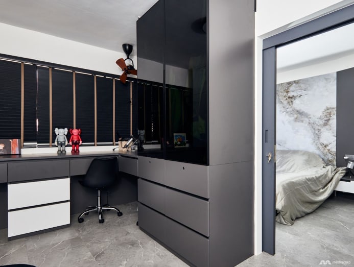 The original master bedroom, which is the bigger of the two bedrooms and has an ensuite bathroom, was converted to his study and walk-in wardrobe and the adjoining wall fitted with a sliding door to connect the rooms.