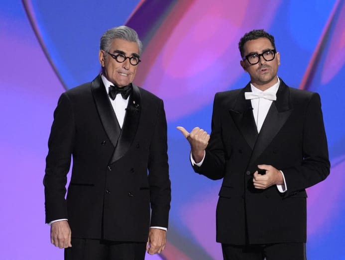The father-and-son duo of Eugene and Dan Levy, the winning stars of the 2020 Emmys aboard Schitt’s Creek, hosted and they were warm, mocking themselves as they noted the TV telecast was honouring "movie stars on streaming services”.