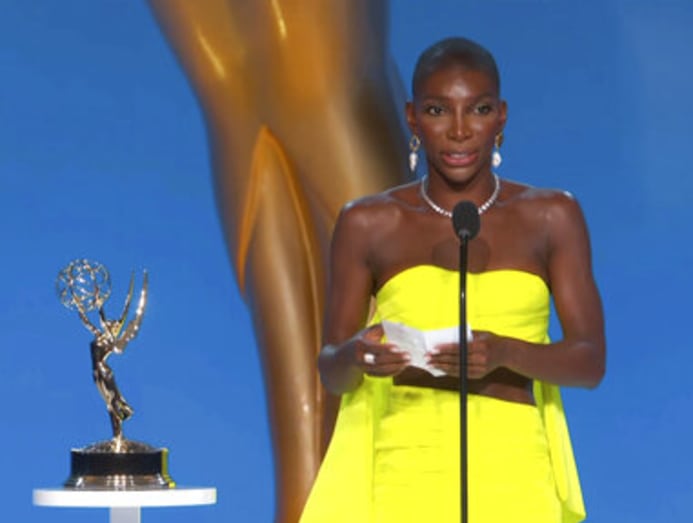 Michaela Jae “Mj” Rodriguez wore vintage Versace Atelier in teal in an homage to Old Hollywood, her hair flowing down her back, and Billy Porter worked large wings on his black trouser look at the slimmed-down Emmy Awards held on Sunday (Sep 19) (Monday morning, Singapore time)