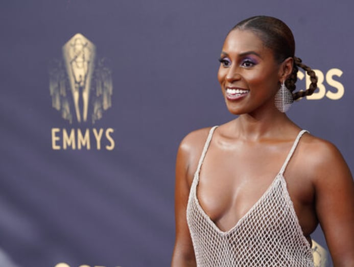 Another standout: Michaela Coel in a bright yellow bandeaux top and matching skirt as she raced inside after closing down the carpet. Issa Rae wore a custom mesh look in white from Aliette. It was a simple, sporty silhouette, with impact.