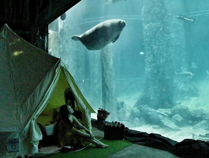 Sleeping in a tent inside the exhibit, pitched right up next to the huge aquarium wall, turned out to be as magical an experience as it sounded.