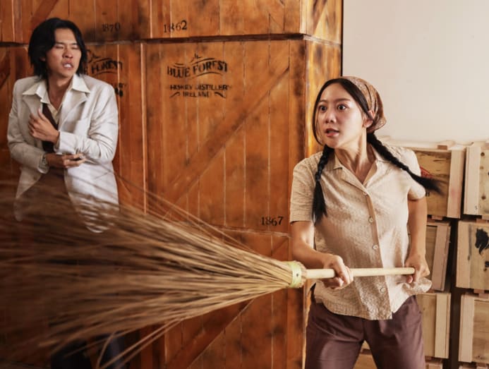 Tasha Low was shooting a scene that saw her hitting someone with a broom. The scene also called for Mediacorp actor Herman Keh to step forward and stop her.