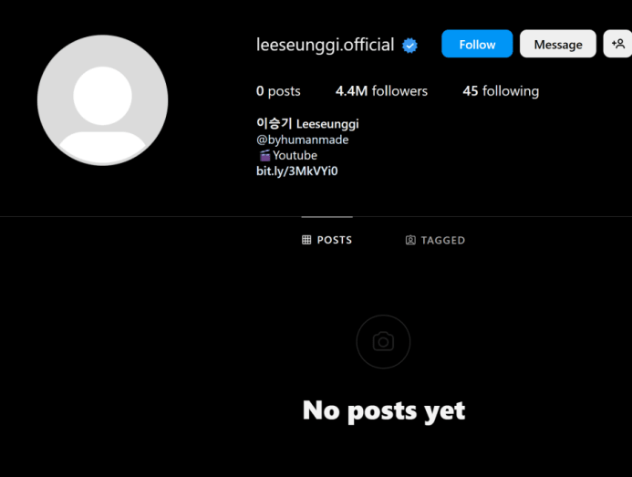 Korean actor Lee Seung-gi deletes all his Instagram posts and profile picture