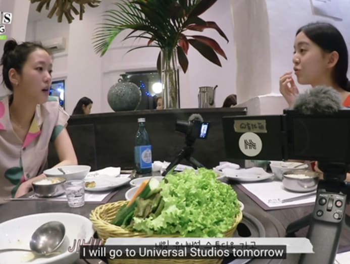 From left: Kim Go-eun walking with the Marina Bay Sands skyline in the backdrop and Kim with Bridget Fernandez. (Photos: Netflix, Instagram/b_r_e_e_f)