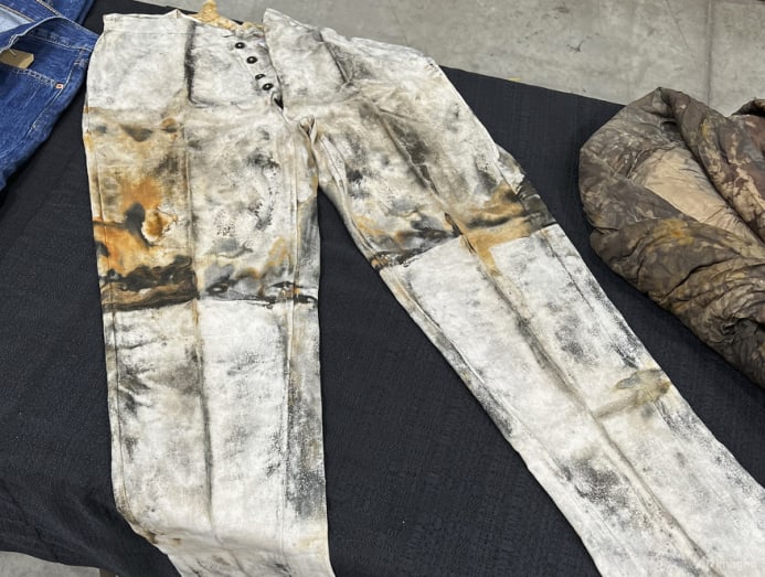 FILE - A pair of work pants, possibly made by or for Levi Strauss, from the SS Central America are seen in a warehouse in Sparks, Nevada, on May 4, 2022. Pulled from a sunken trunk at an 1857 shipwreck off the coast of North Carolina, work pants that auction officials describe as the oldest known pair of jeans in the world have sold for US$114,000. (Jason Bean/The Reno Gazette-Journal via AP, File)