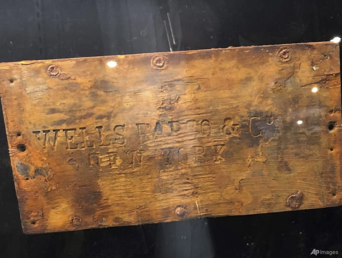 The lid of a Wells Fargo & Co treasure box believed to be the oldest of its kind went for US$99,600. An 1849 Colt pocket pistol sold for US$30,000. A US$20 gold coin minted in San Francisco in 1856 and later stamped with a Sacramento drug store ad brought US$43,200.