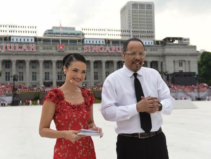 As the parade’s official emcee and “Voice of NDP”, anyone who has watched the show – even just a rehearsal – would recognise his deep baritone. He’s not seen on stage, unlike the four main hosts. But his voice is a hallmark of the NDP experience.