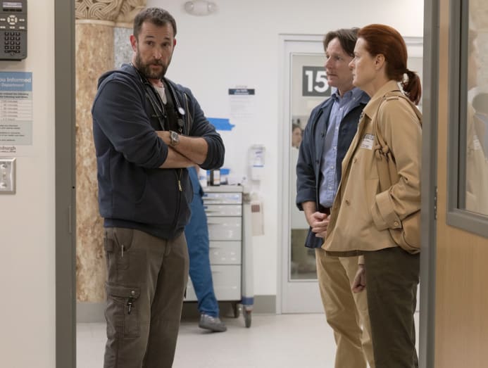 Robby is calm and competent in showing his medical students how it’s done, while keeping his own mental health crisis hidden. Not that there are many places to hide: Wyle explains that they are setting themselves apart from other hospital dramas by turning up the lights, cutting the mood-telegraphing music and showing the real dimensions of the department.