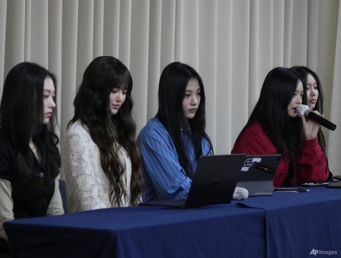 Members of South Korean K-Pop group NewJeans attend a press conference to declare contract termination with the band's label citing multiple reasons including unfair treatment, in Seoul, South Korea, Nov 28, 2024. (Photo: AP Photo/Ahn Young-joon)