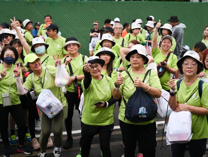 The 12-hour relay President’s Challenge Walkathon, flagged off by President Tharman Shanmugaratnam and Ms Jane Ittogi, at The Turning Point on Oct 6, 2024. (Photo: CNA/Syamil Sapari)