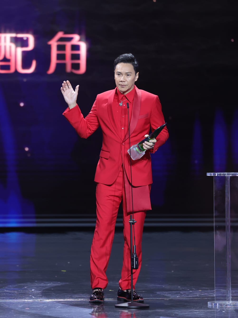 Coincidentally, he’d also been wearing red last year, when he took home his first Top 10 Most Popular Male Artistes award, so, “someone told me that if I won this time, I should wear red every year.” Looks like Brandon Wong in a red suit is the new black rose on Chen Hanwei – a lucky charm for the actor.