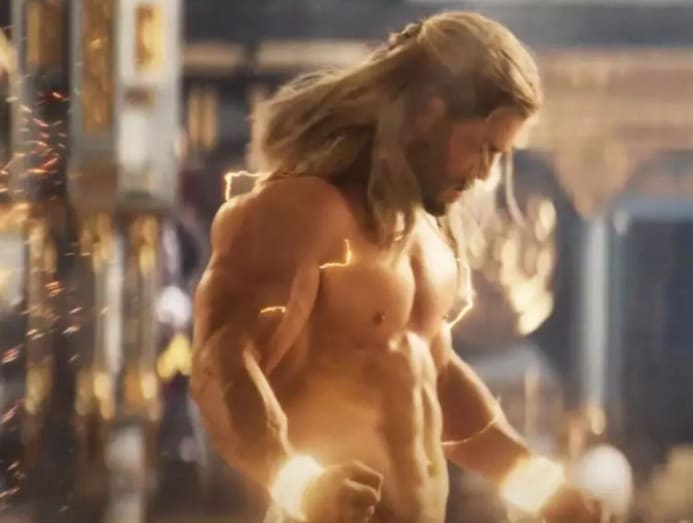 Chris Hemsworth baring it all as Thor in Thor: Love And Thunder. (Photo: Marvel Studios)