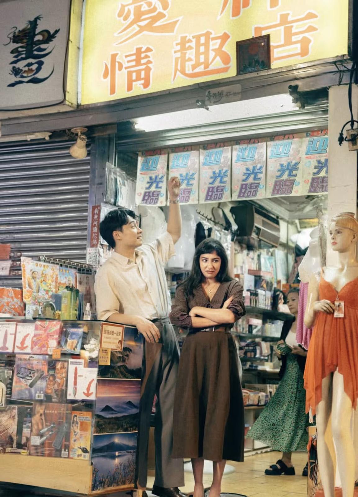 The couple also posed in front of various shops in the Taipei night markets, and the most eye-catching one has got to be them standing right in front of a sex toy shop.