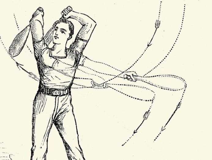 The sport involves holding two "Indian clubs" and the winner is chosen based on the difficulty and uniqueness of the moves. These have a similar shape to bowling pins but they’re much longer and heavier.
