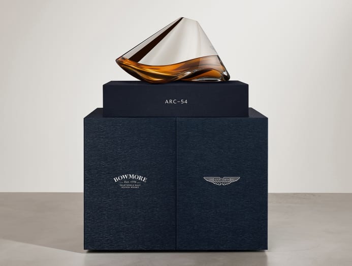 Designed by Aston Martin, the Arc-54 decanter is a stunning handblown glass sculpture that traces the Formula One-inspired aerodynamic lines and styling of the Valkyrie, which was engineered in collaboration with Red Bull Racing Advanced Technology. Specifically, the supple flow of air through the venturi tunnels beneath the 6.5-litre V12 hypercar capable of whipping up a blistering 1,140 bhp of power.
