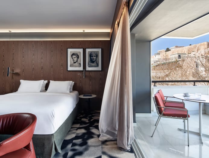 A Design Hotels property, each of the 21 guestrooms and suites has a street-facing balcony. The grandest is the 55-sq-m Hellenic Suite attached to a 45-sq-m verandah facing the Acropolis. Combined with the Executive Suite, it becomes the capacious 110-square-metre Hellenic Grand Suite.