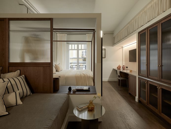 With walnut veneer-wrapped walls, bathrooms clad with Greek marble, and classic furniture like the LC3 armchair designed by Le Corbusier, Pierre Jeanneret and Charlotte Perriand, AthensWas is a design-lover’s dream. The hotel’s style pays tribute to its former life as a modernist apartment block in the 1970s.