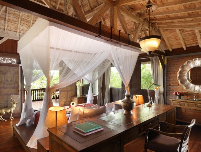 However, its best offering might come down to the well-curated art and antique collections. Arriving at its main gate, guests will be greeted by a couple of ancient elephant statues from Rajasthan. Decorating the bar is a 19-century Burmese throne, while next to the pool stands an evocative sculpture by the Indonesian celebrated artist Entang Wiharso. Depending on which room you pick, you might stumble upon great pieces by Agapetus Kristiandana or Cai Zhisong.
