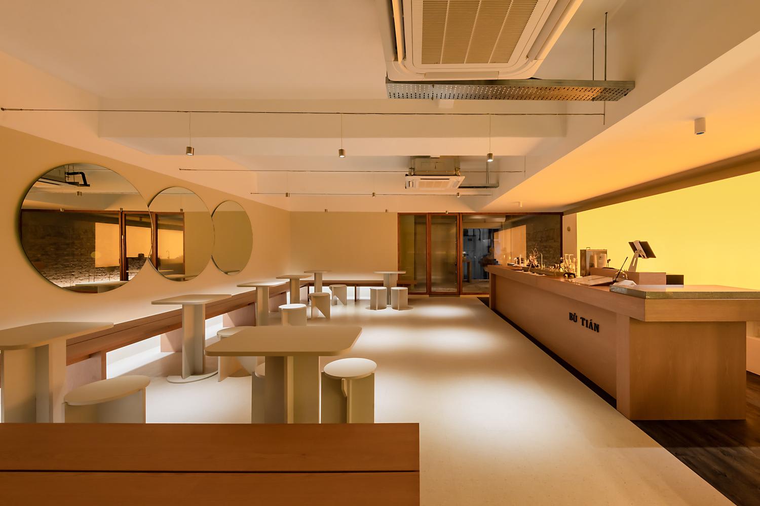 Once just a takeaway dessert business, Bu Tian now serves its signature tea-based, triple-layered treats in a full-fledged cafe with a pale autumnal palette. The store's name, which means 'Not Sweet' in Mandarin, reflects its belief in balancing natural flavours without overwhelming sweetness.