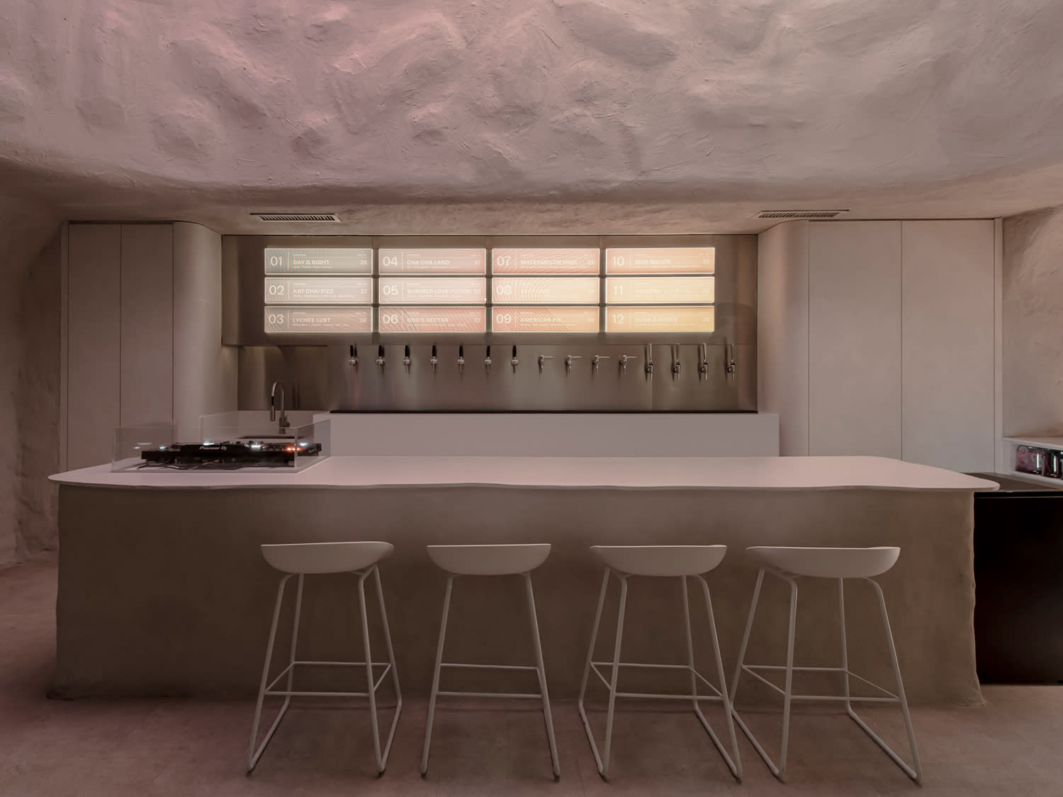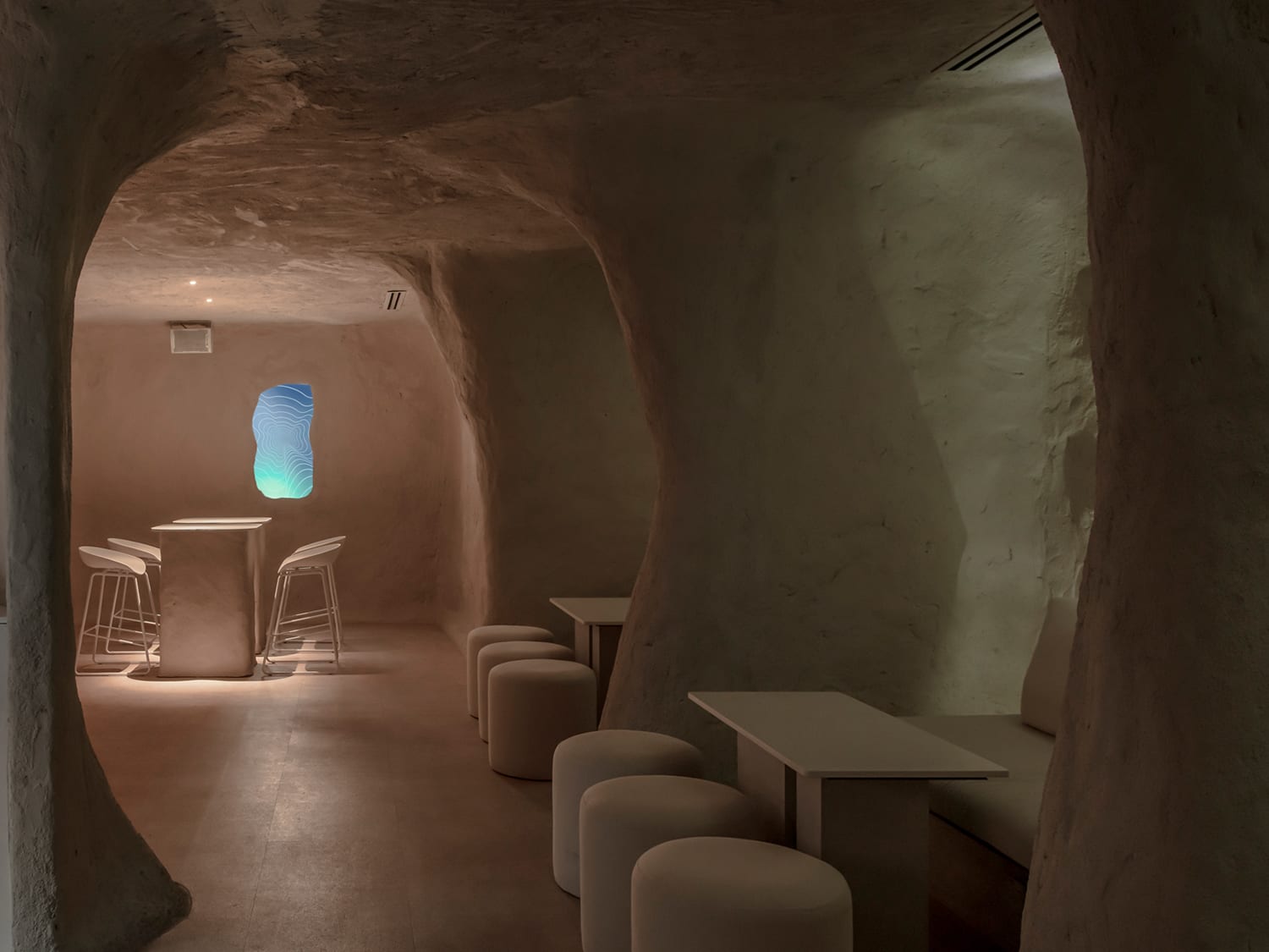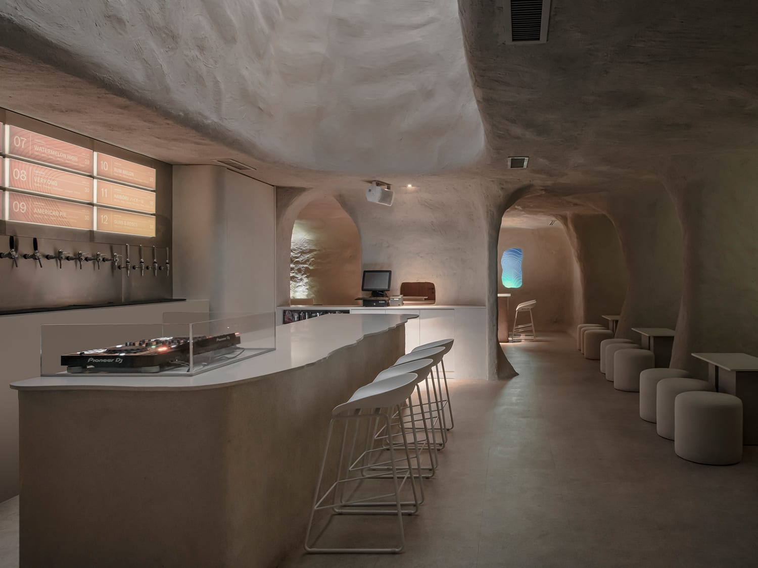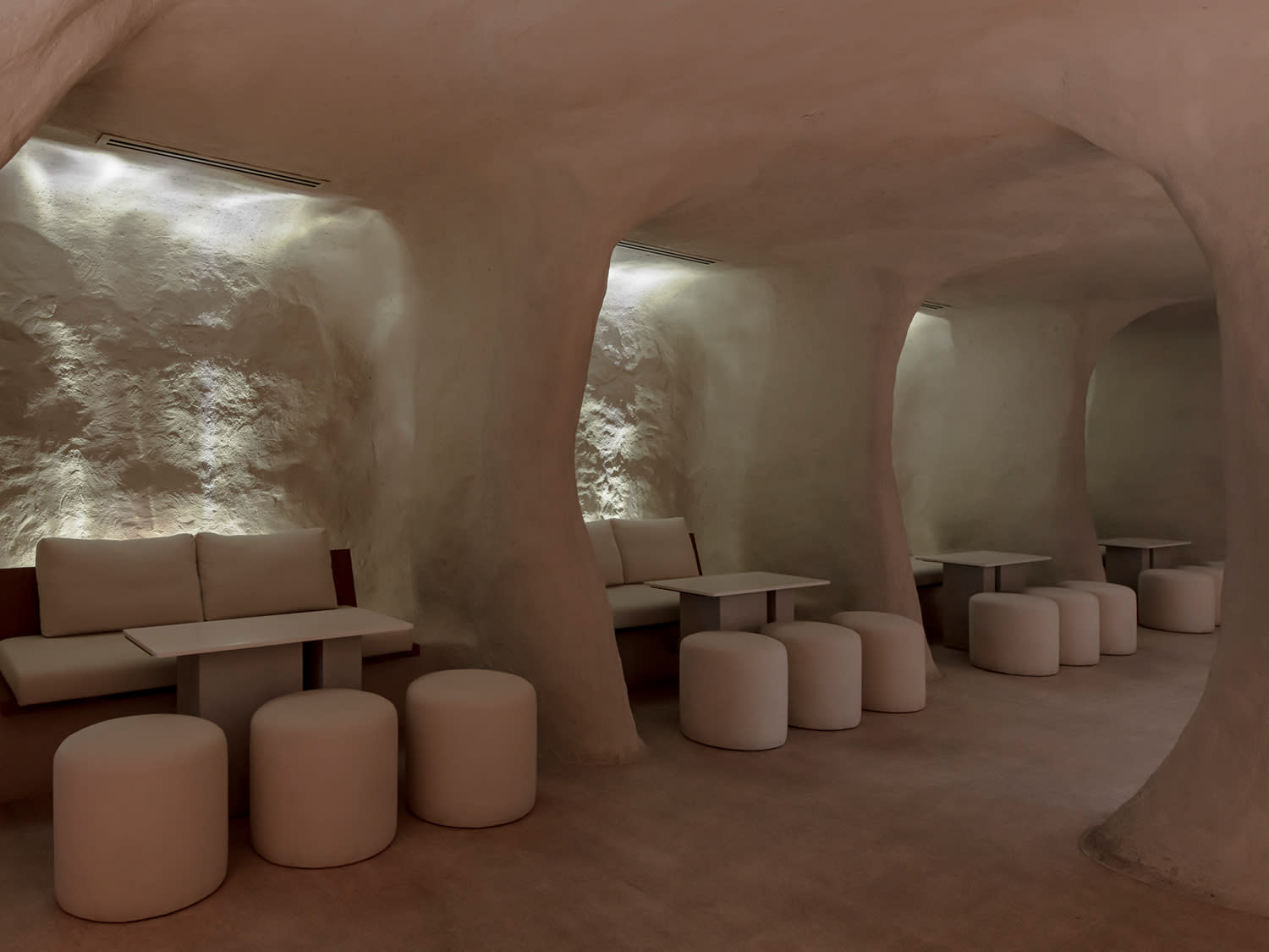 Located in Desa Sri Hartamas, Tap Tap cocktail bar is housed in a cave-like space showcasing rough walls and monolithic furniture. Think The Flinstones meets Kim Kardashian’s Hollywood homes by Axel Vervoordt. EMPT Studio designed this unique setting with soft contoured walls, private niches and an off-white palette aglow with diffused lighting.