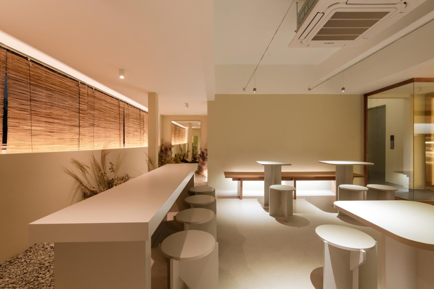 The store's design concept extends this philosophy by featuring a subtle and neutral tone, eliminating visual distractions to promote mindfulness and enhance the sense of taste.