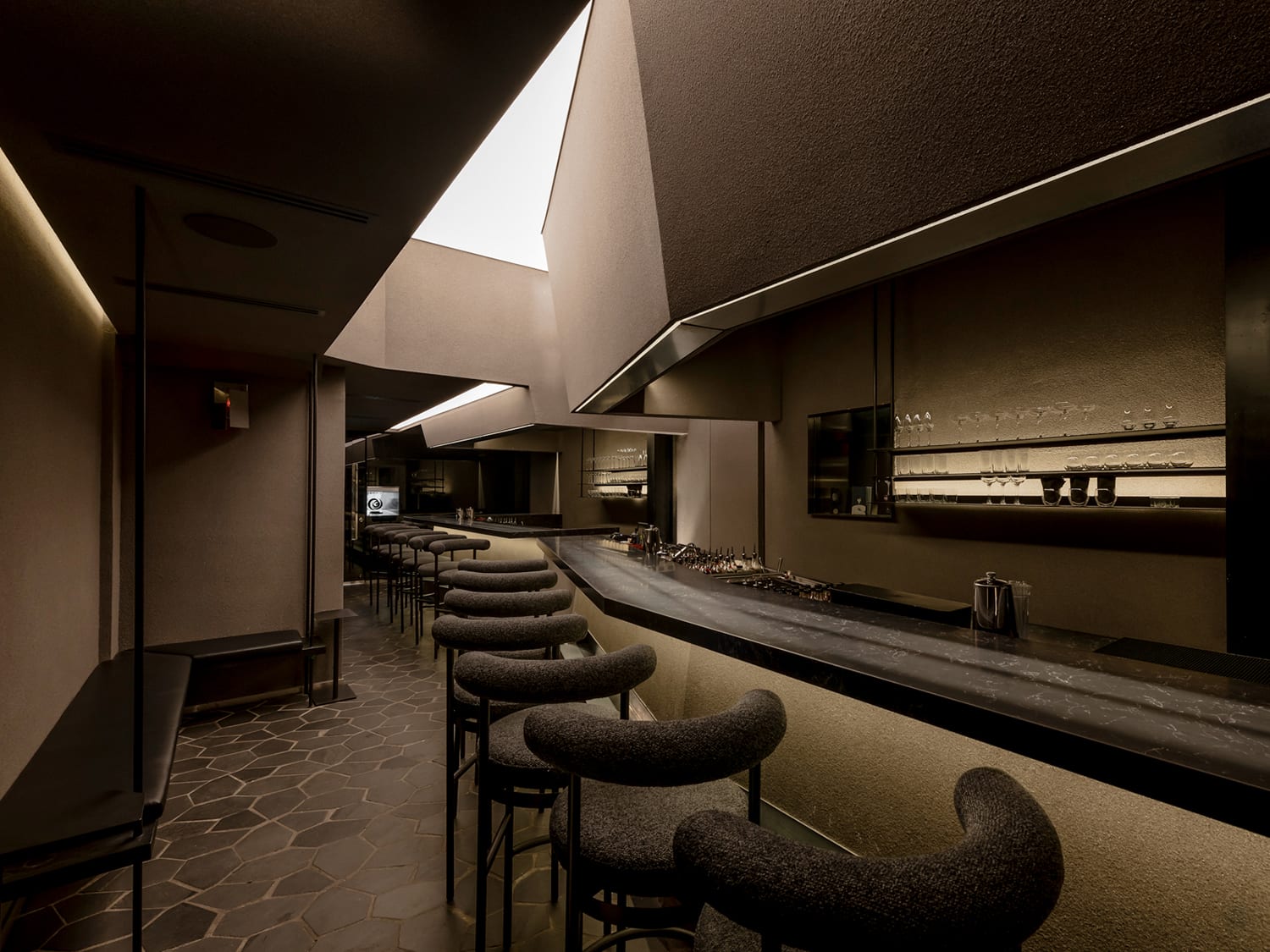 Lighting is atmospheric and underlines the sophistication of the dark palette of blacks, granites and greys. Just the right setting for the concise but elegant menu of what is considered the best cocktails in the city.