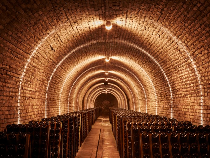 After primary fermentation in tanks, the wine undergoes a second fermentation in the bottle, which produces carbon dioxide and the wine’s bubbles.