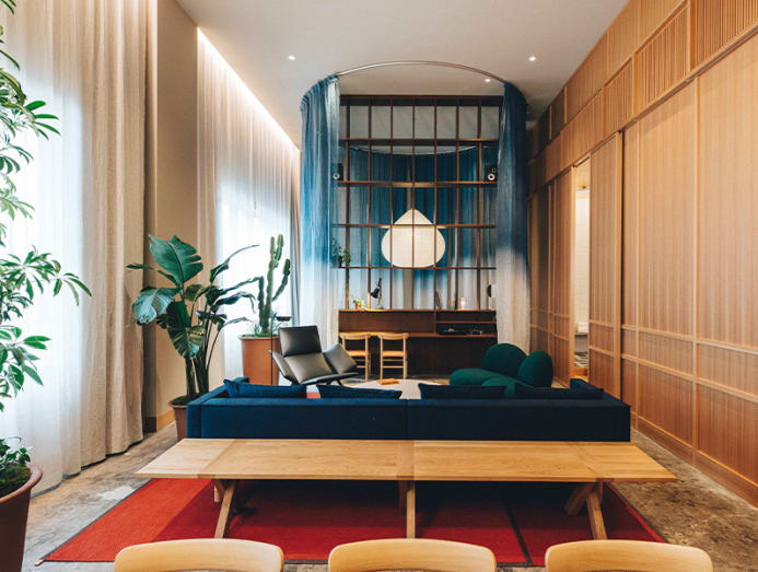 The 20-key hotel’s rich palette by Stockholm-based architectural firm Claesson Koivisto Rune includes raw concrete, original parquet flooring, copper elements, coloured glass panels and designer furniture, many designed by the firm. Suifu chochin bamboo-and-washi paper lanterns, as well as shibori curtains around the beds in Signature K5 guestrooms give the spaces a romantic yet modern appeal.