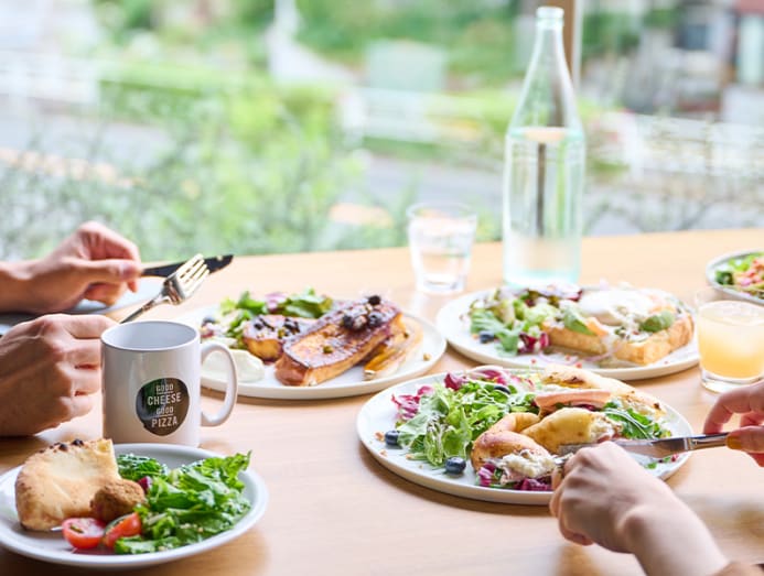 On the first floor is a bar/ kiosk and cafe serving Onibus Coffee and tipple from Danish craft beer brewery Mikkeller. On the second floor is Good Cheese Good Pizza. The pizza cheese is made fresh from milk delivered daily to the restaurant from a dairy farm in Kiyose in Tokyo.