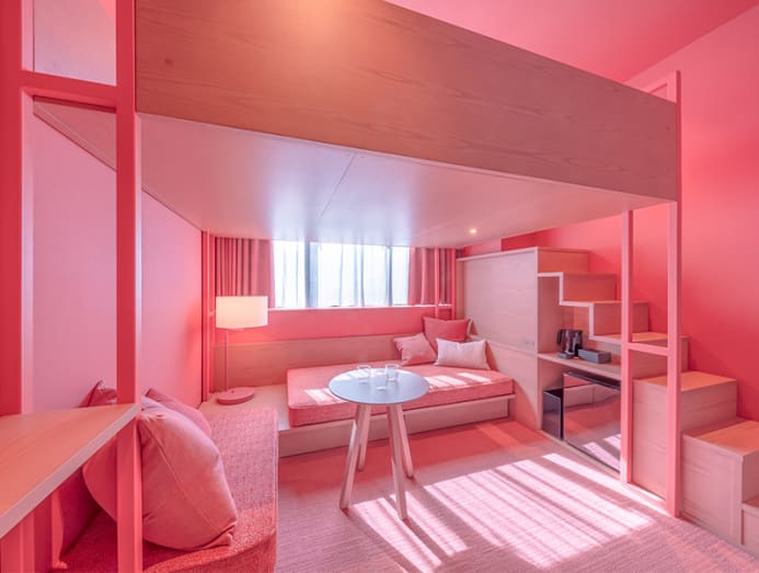 KDa also hoped for the use of colour to brighten guests’ days. There are 10 different room types in about 60 different colour combinations, including loft configurations that allow three persons to stay in a room. Despite the closeness to transportation lines, the interiors are sound insulated.