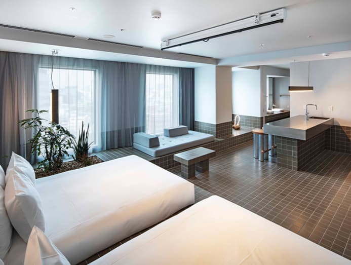 Most of the 160 rooms are compact but nicely designed. For four guests, the Party Suite is a capacious room with a large screen projector, and tableware and cutleries for party use. For couples that want a more luxurious stay, book the Weekend Suite that has a superior sound system, a curated book selection and hand-drip coffee equipment.