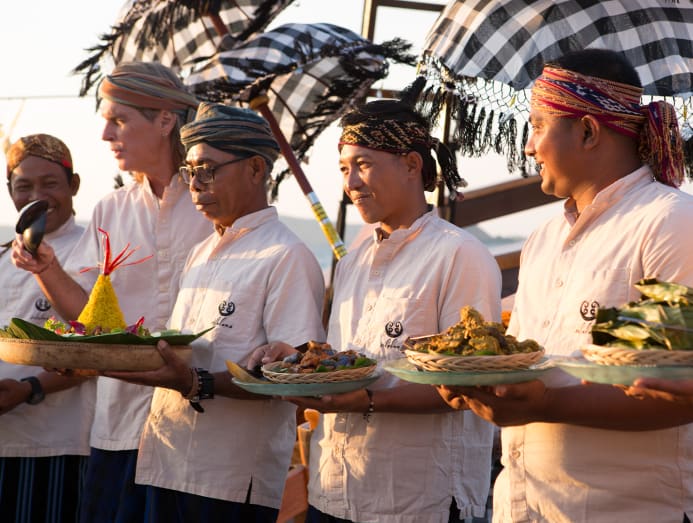 The 45m, seven-bedroom luxury phinisi Celestia is exclusively for private charters and offers a glimpse of Indonesia’s culinary soul through the cooking of well-known Balinese chef Wayan Kresna Yasa. His home-style dishes change according to the catch of the day with ingredients such as spices, roots, leaves, nuts and chillies. Highlights include wild-caught tuna with sambal matah to tamarind duck confit and pandan panna cotta. Learn the stories behind the dishes, imbued with Wayan’s personal perspective whenever he is on board.