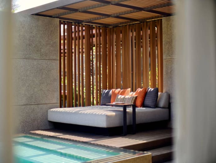 It’s luxurious but not overdone, with thoughtful touches along the way. In the wardrobe, sunhats are provided in addition to tote bags. There’s a steam iron in case your silken eveningwear needs touching up. Power sockets are conveniently located by the bedside. And a drying rack sits on the outdoor deck, ready to receive your swimwear or other laundered items.